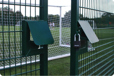 Often there is a requirement to install addition single or double leaf gates to a pitch due to changes access and pitch use. Retro-fit gates can be fitted to match your existing sports pitch fencing without compromise on quality or security. As standard long-life, adjustable, hinges, drop bolts and slide latches are included. Optional mag locks and self closing systems can be added along with lintel panels to go above intergrated gates to maintain hight and security. Fitted to newly installed posts to match your existing pitch, it will be like the gate was always there.